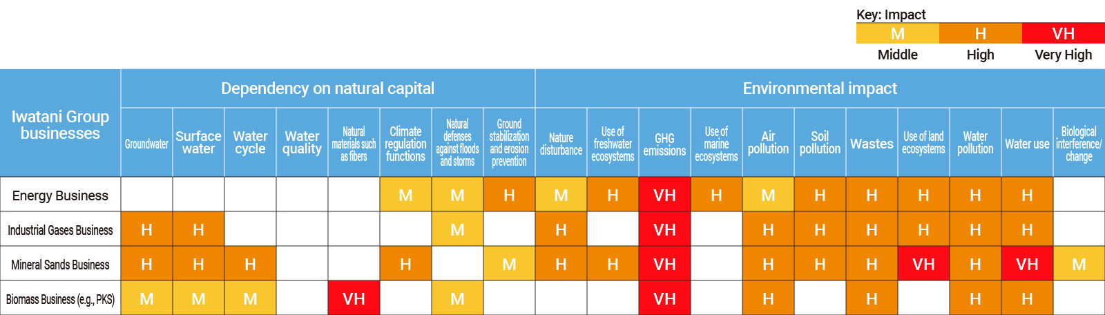 Identifying points of contact with nature in the Iwatani Group’s main businesses (high-impact businesses)
