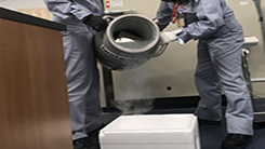 すっぽんには多くの栄養が含まれていますが、その栄養素を壊さないまま手軽に利用できるようにするのは困難とされていました。この問題を解決するため、1980年に液化窒素を使用した凍結粉砕技術をすっぽんに応用。すっぽんの栄養素を変性させることなく粉末にすることに成功しました。凍結粉砕技術とは、極低温(-196℃)の液化窒素ですっぽんを丸ごと瞬間凍結させ粉砕する方法です。極低温で加工するため、熱で変性してしまう栄養素を変性させることなく微粉砕化し、パウダー状にすることができます。この技術により、イワタニはサプリメントやスポーツドリンク、スープなどすっぽんシリーズを幅広く展開していきました。