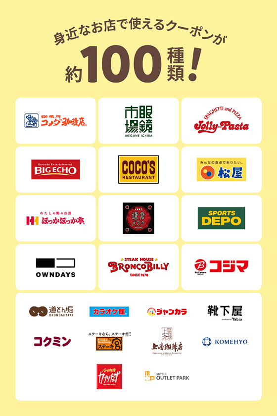 グルメ、ショッピングなどでお得に使えるクーポンが盛りだくさん。スマホ画面を提示するだけなので、気軽にお使いいただけます。
